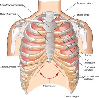 As so many structures are related with the chest wall , all of these can be source of pain in the chest. In fact the bony causes for chest pain are quite low down the list of causes of chest pain. The common reasons for which the pain is felt in the chest are from heart e.g. heart attack, angina, causes related to lung conditions include pneumonia, pleurisy or severe spasm in the chest or blood clot in the lung. Acid reflux from stomach into the food pipe oesophagus also causes heartburn. Of the musculoskeletal causes of chest pain the common ones are a broken rib, inflammation of the rib cartilage in the front - costochondritis, trapped or irritated nerves due to multiple rib fractures or muscle ache from attempted lifting of heavy weight or vigorous unaccustomed exercises. Sometimes broken ends of the rib penetrate the underlying lungs causing air leakage and collapse of the lung (pneumothorax) associated with severe pain.